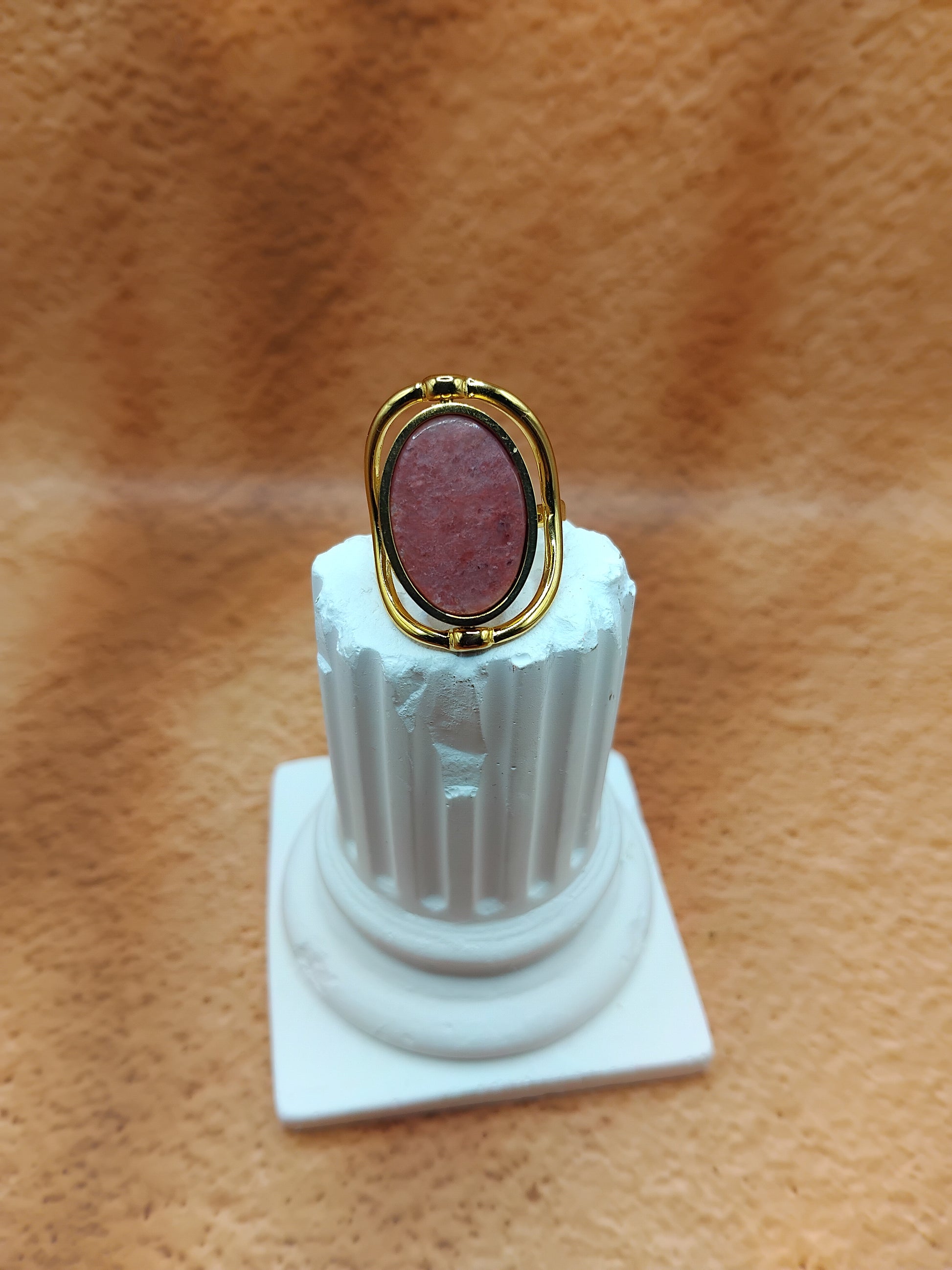 Une bague dorée en acier inoxydable ornée d’une pierre rotative :