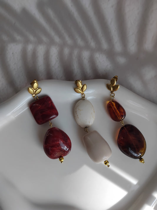 Bracelets, colliers et boucles d'oreilles se déclinent dans des teintes enveloppantes, entre chocolat fondu , lait d'amande , caramel doré et mousse de cappuccino .