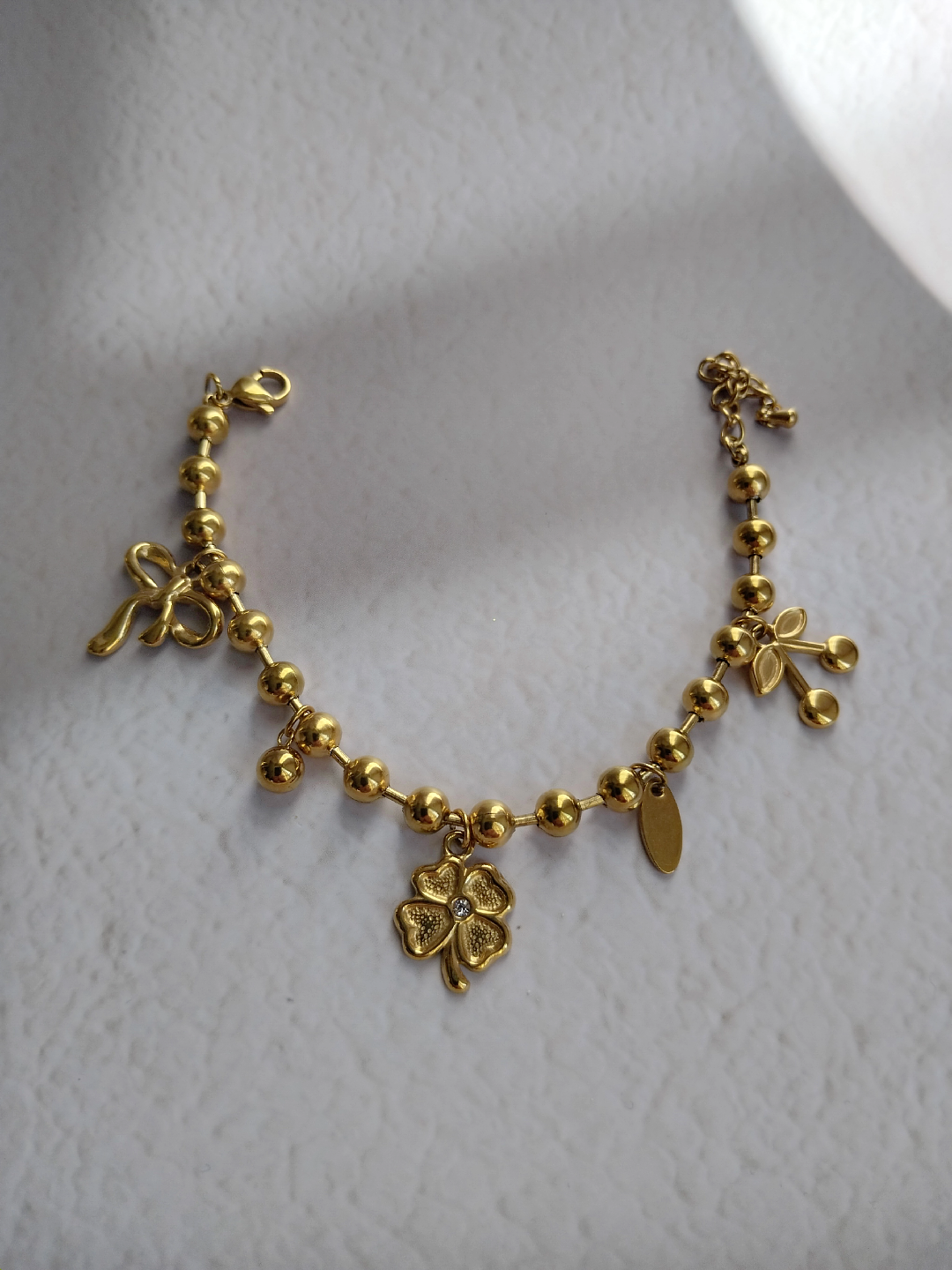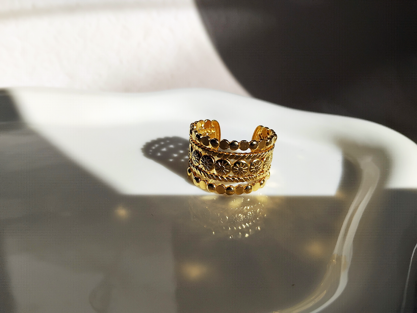 Ce calendrier doré contient 12 bijoux en acier inoxydable (Colliers, bracelets, boucles ou bagues), pensées pour t'accompagner chaque jour de décembre avec délicatesse.