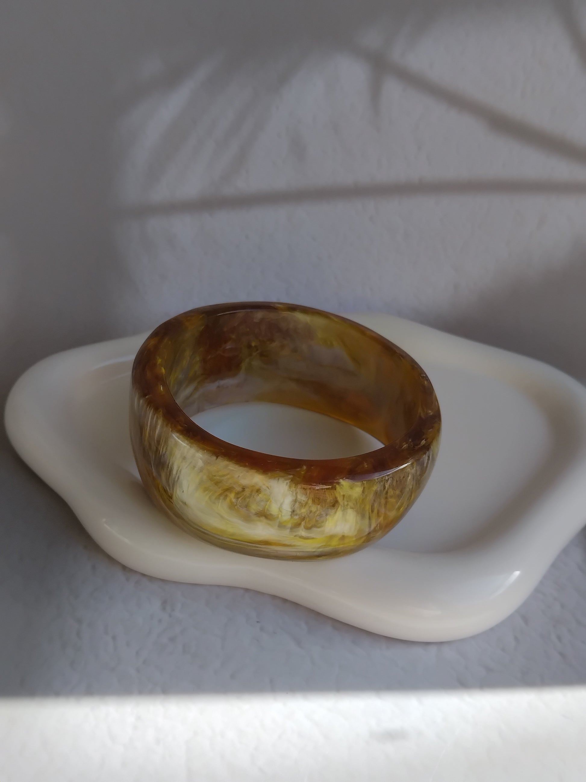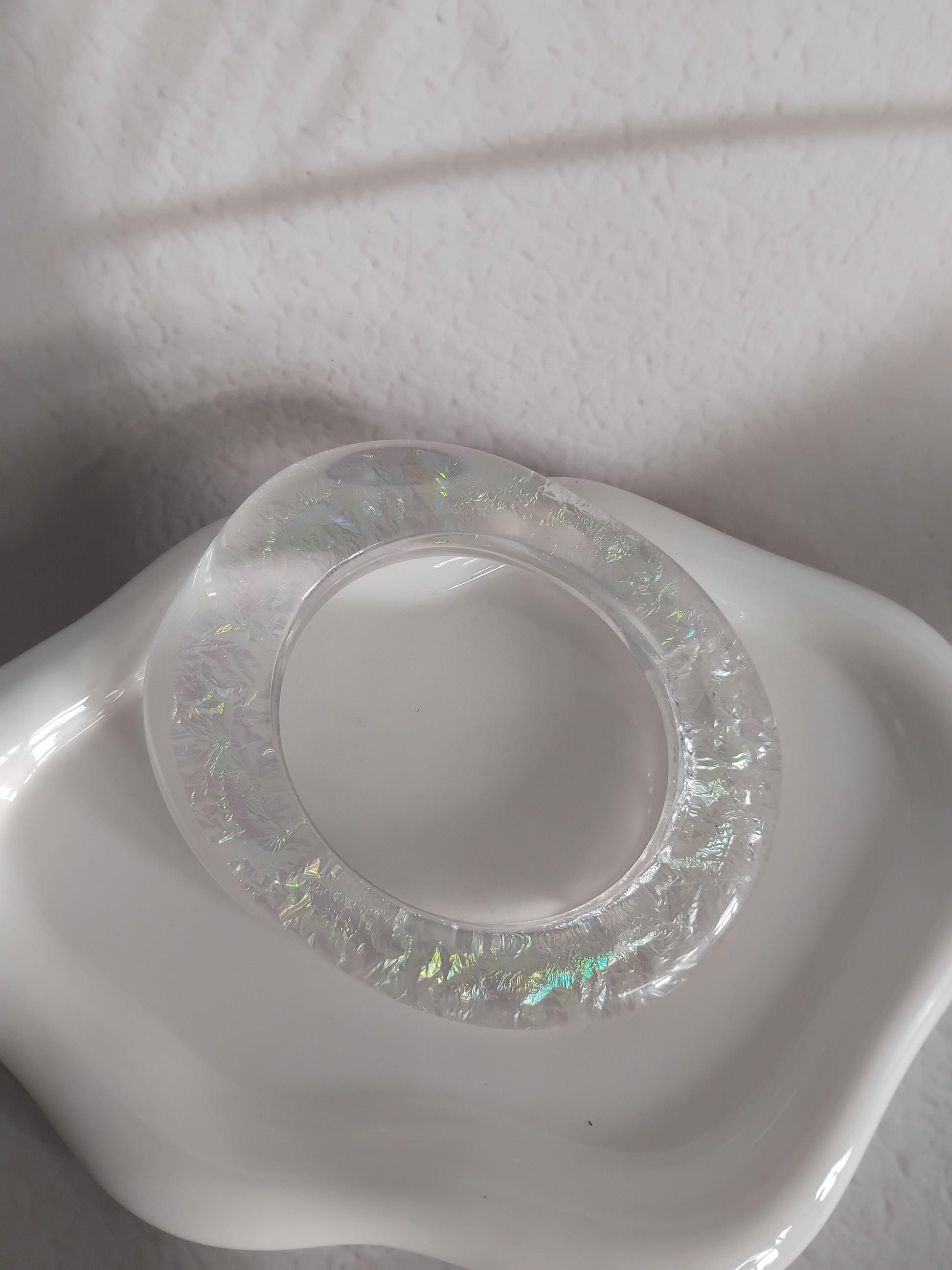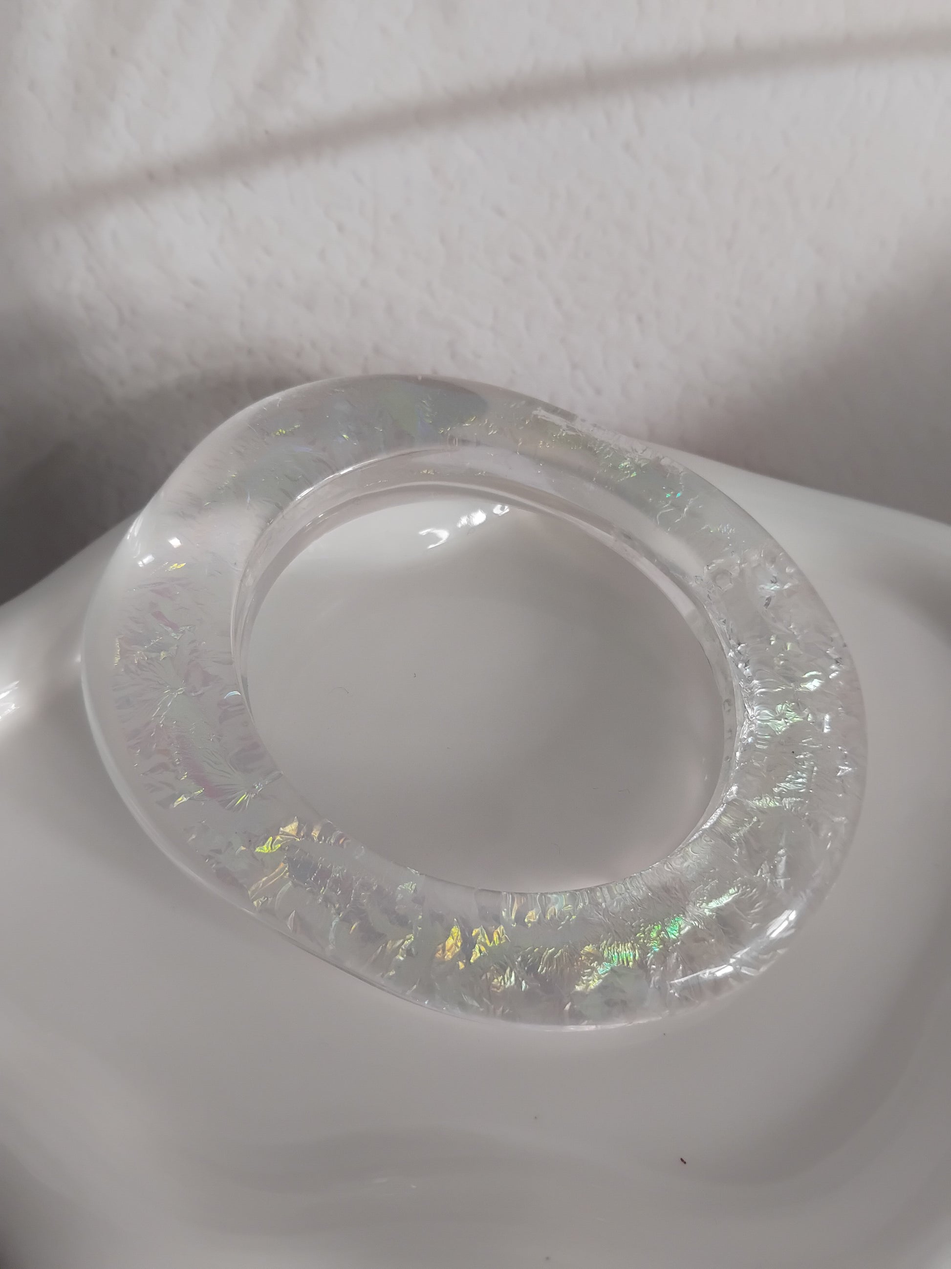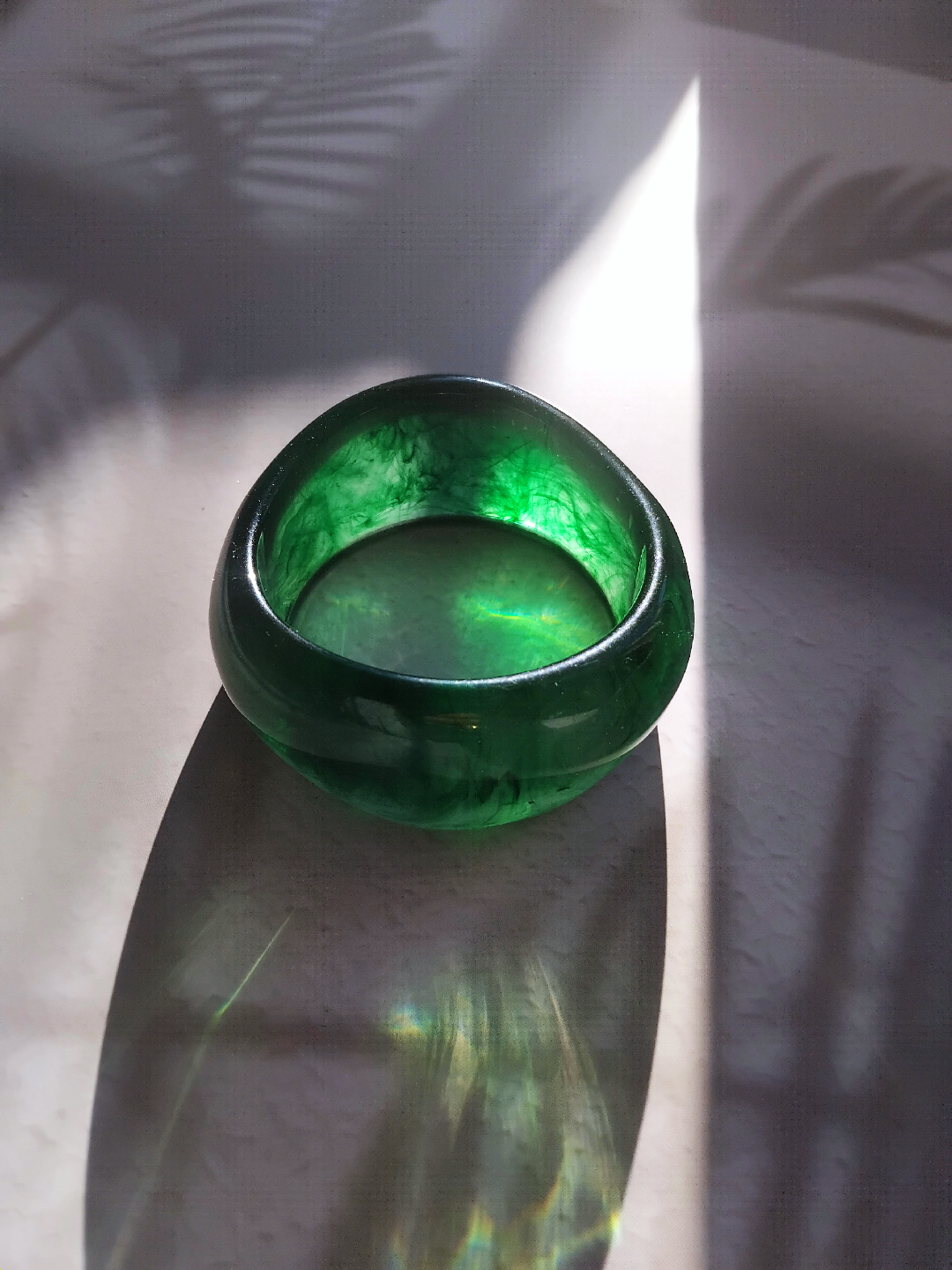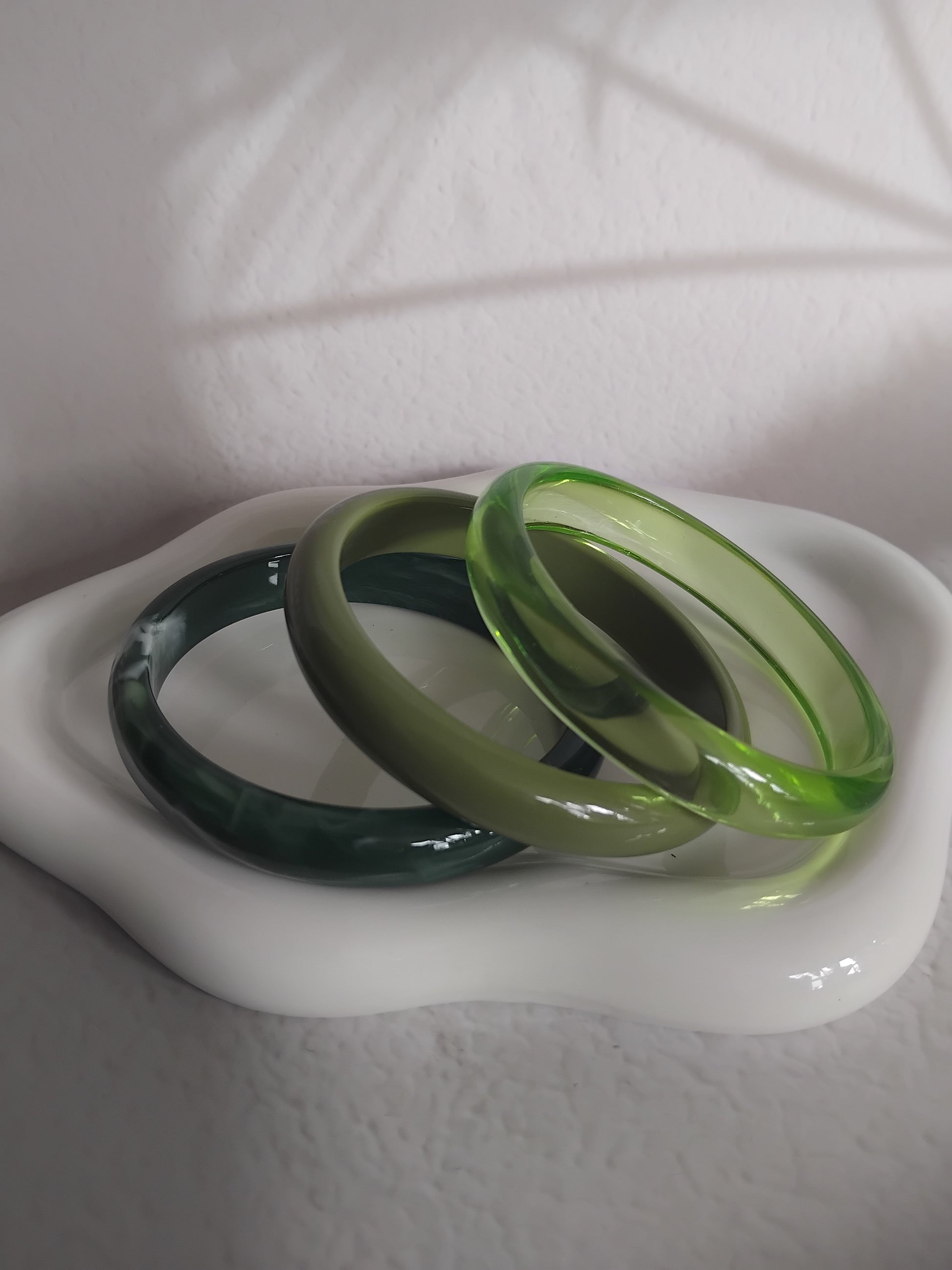 Jonc épais en résine acrylique, existe en vert, doré, transparent, blanc holographique, camaieu de vert.