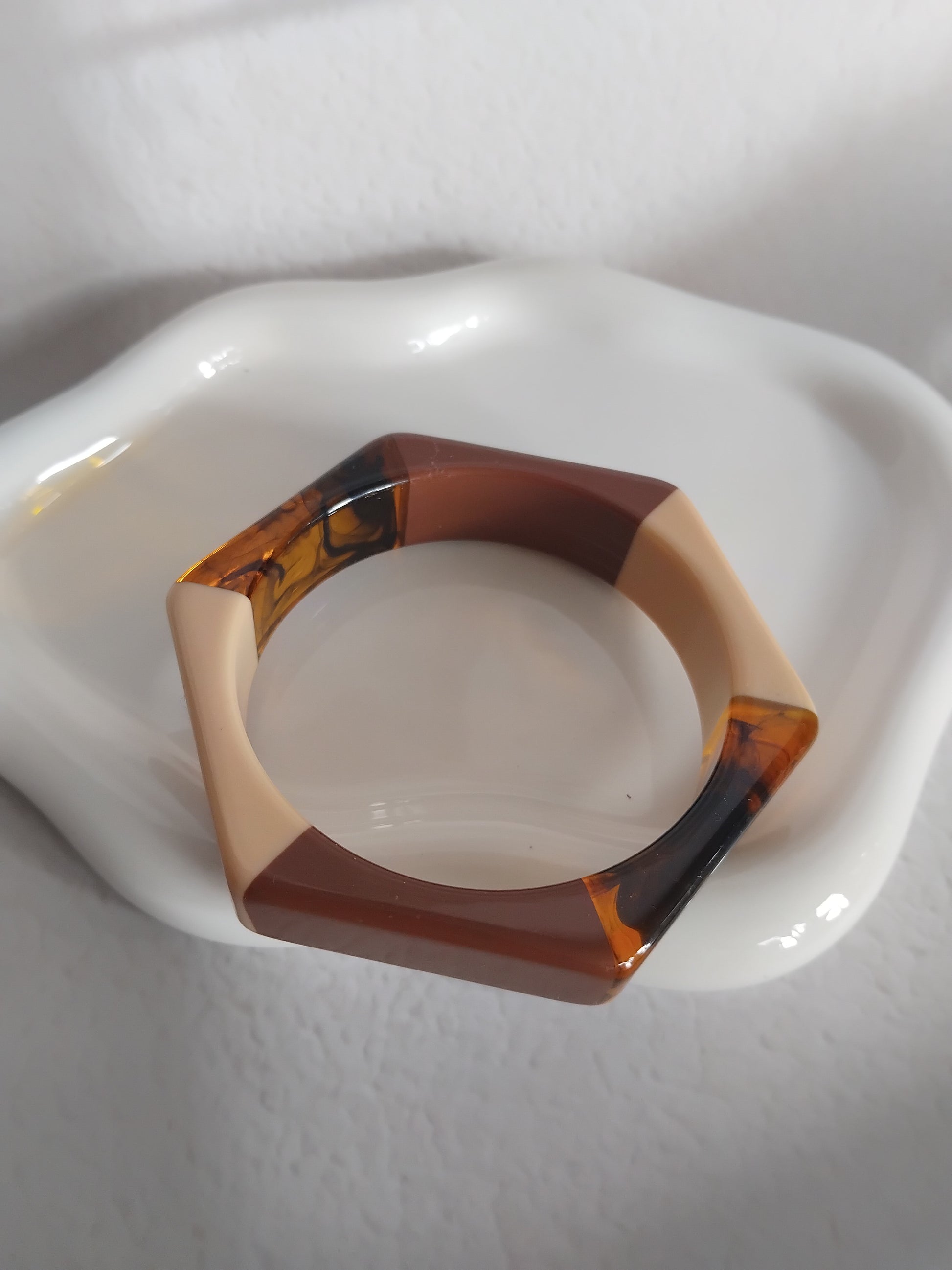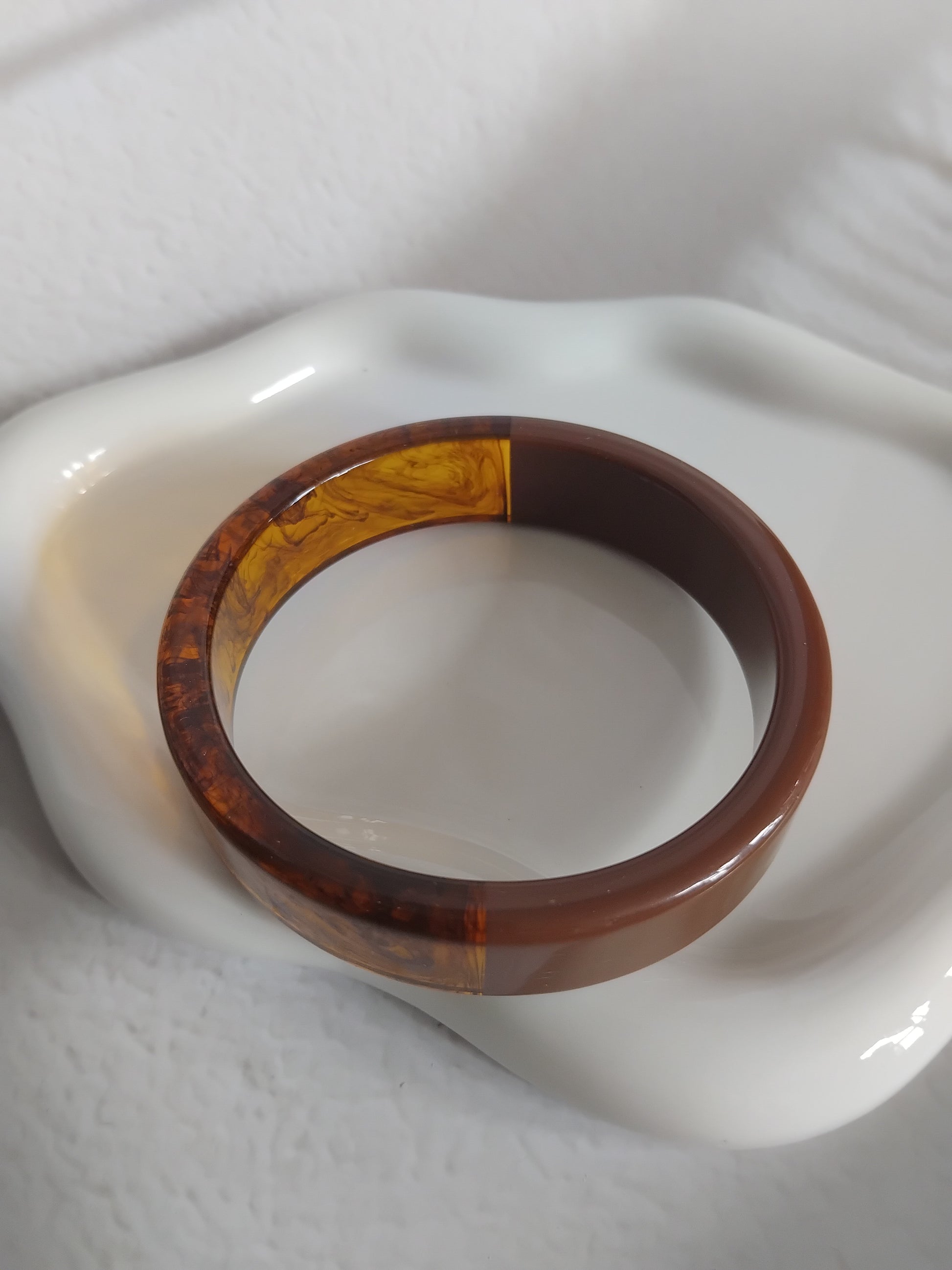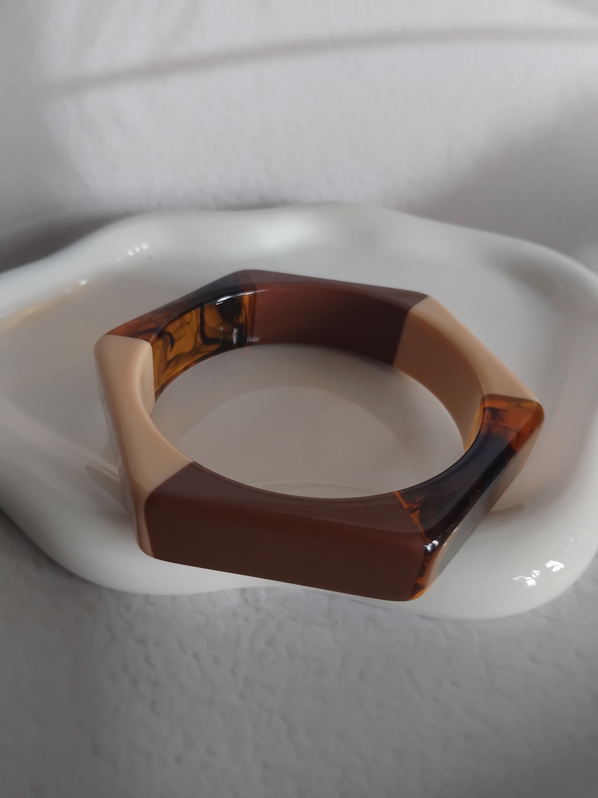 Une collection de bracelets rigides en résine acrylique aux formes généreuses, aux motifs marbrés, finishes glossy ou détails dorés, pensée pour celles qui aiment les accessoires qui claquent.
