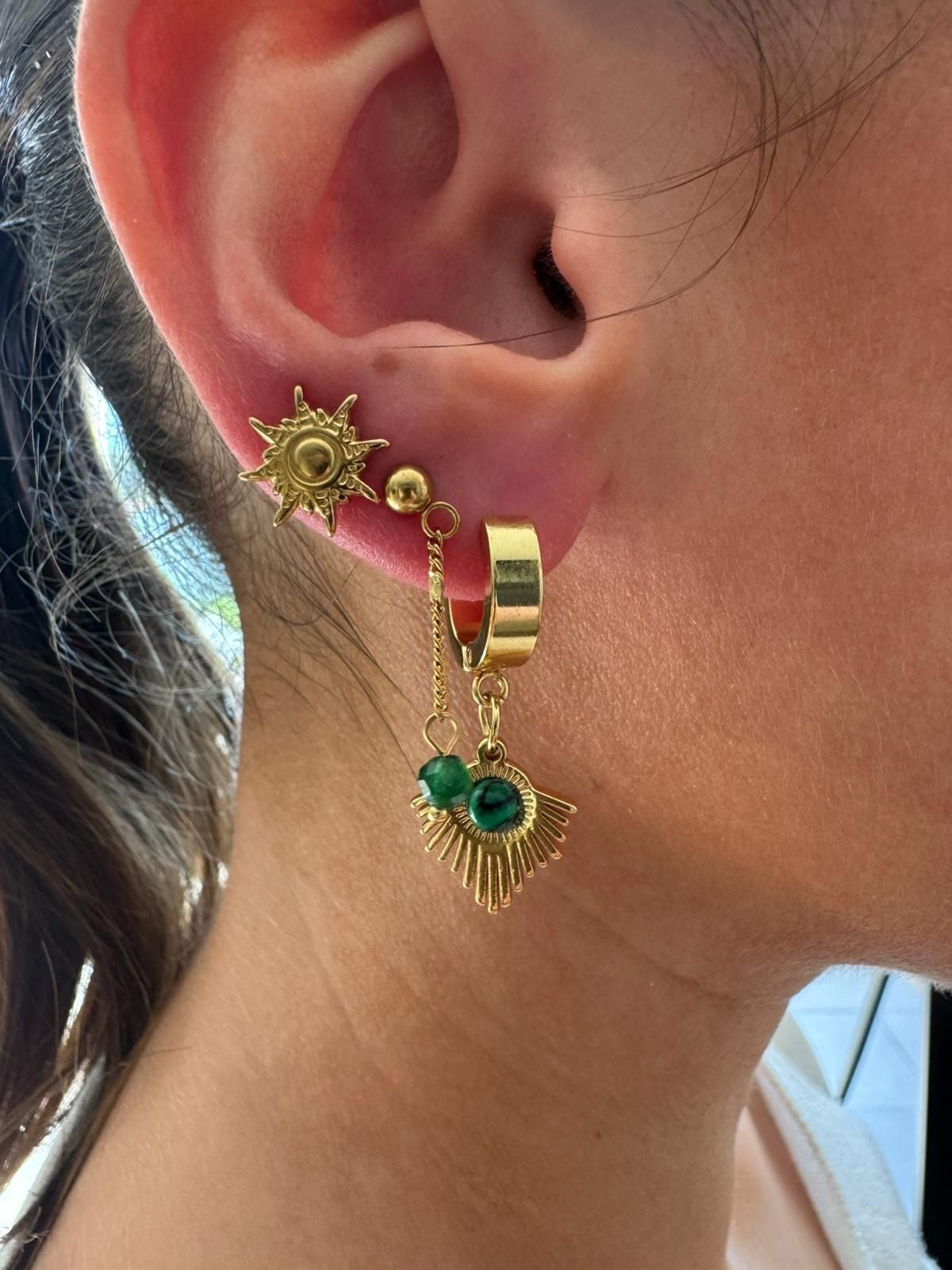 - Boucles pendantes avec perles d’aventurine verte, symbole de chance et d’harmonie