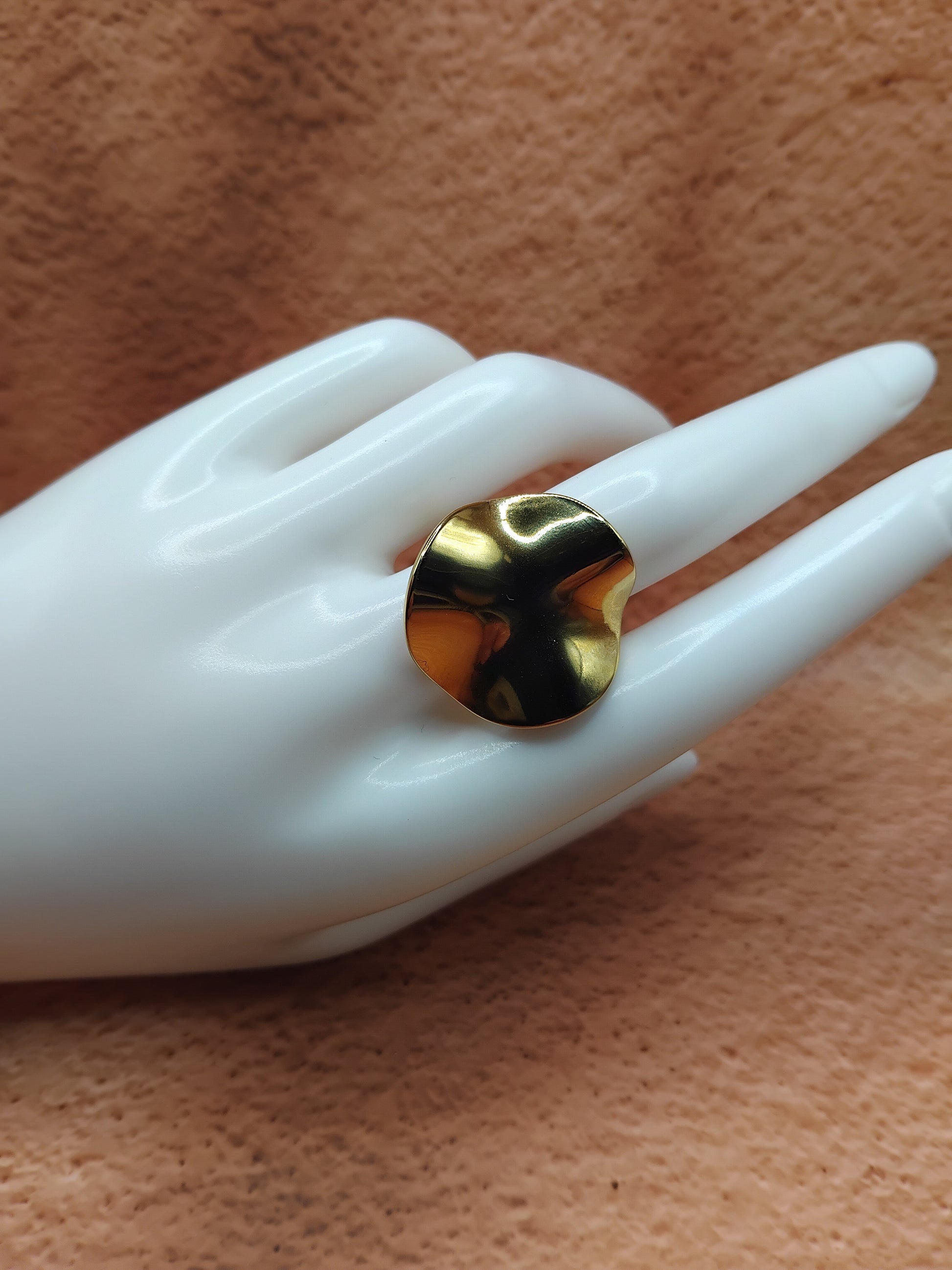 Bague ronde en acier inoxydable, au design unique et imposant — une pièce sculpturale pour affirmer ton style avec puissance.